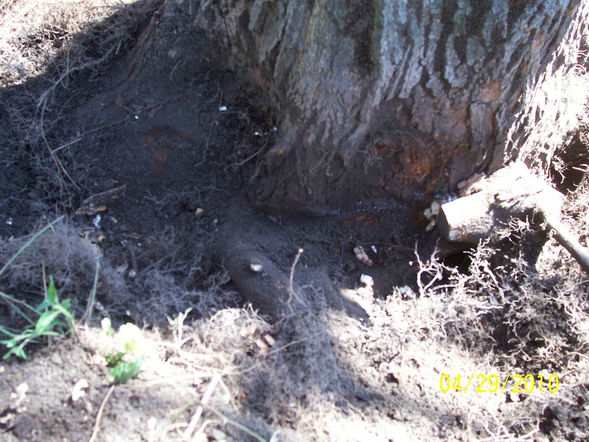 Area where girdling root was removed from maple tree.