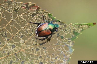 Japanese beetle on linden leaf Photo: Steven Katovich USDA Forest Service Bugwood.org