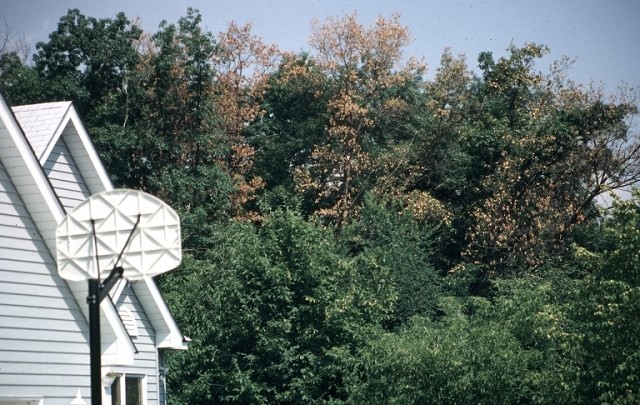Oak wilt spreading in a landscape via root grafts. Photo: John N. Gibbs, Forestry Commission, Bugwood.org